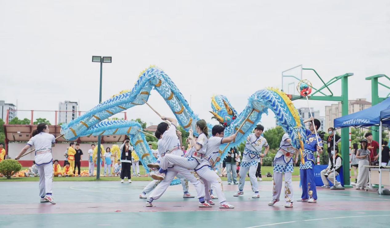 此次比赛吸引了同济大学、上海体育大学、上海第二工业大学等20所高校参加。在明快的音乐旋律中,祥龙瑞狮点睛仪式拉开了比赛帷幕,赛场上,伴随着铿锵有力的音乐,参赛选手们手持巨龙轮番上阵,在他们的手中,巨龙时而腾跃、时而滚动、时而盘起、时而穿插,龙头在龙珠的指引下,随其摆动,像是冲破云霄的巨龙在追逐,场面热闹非凡,十分壮观,让在场师生感受到了传统文化的博大精深。