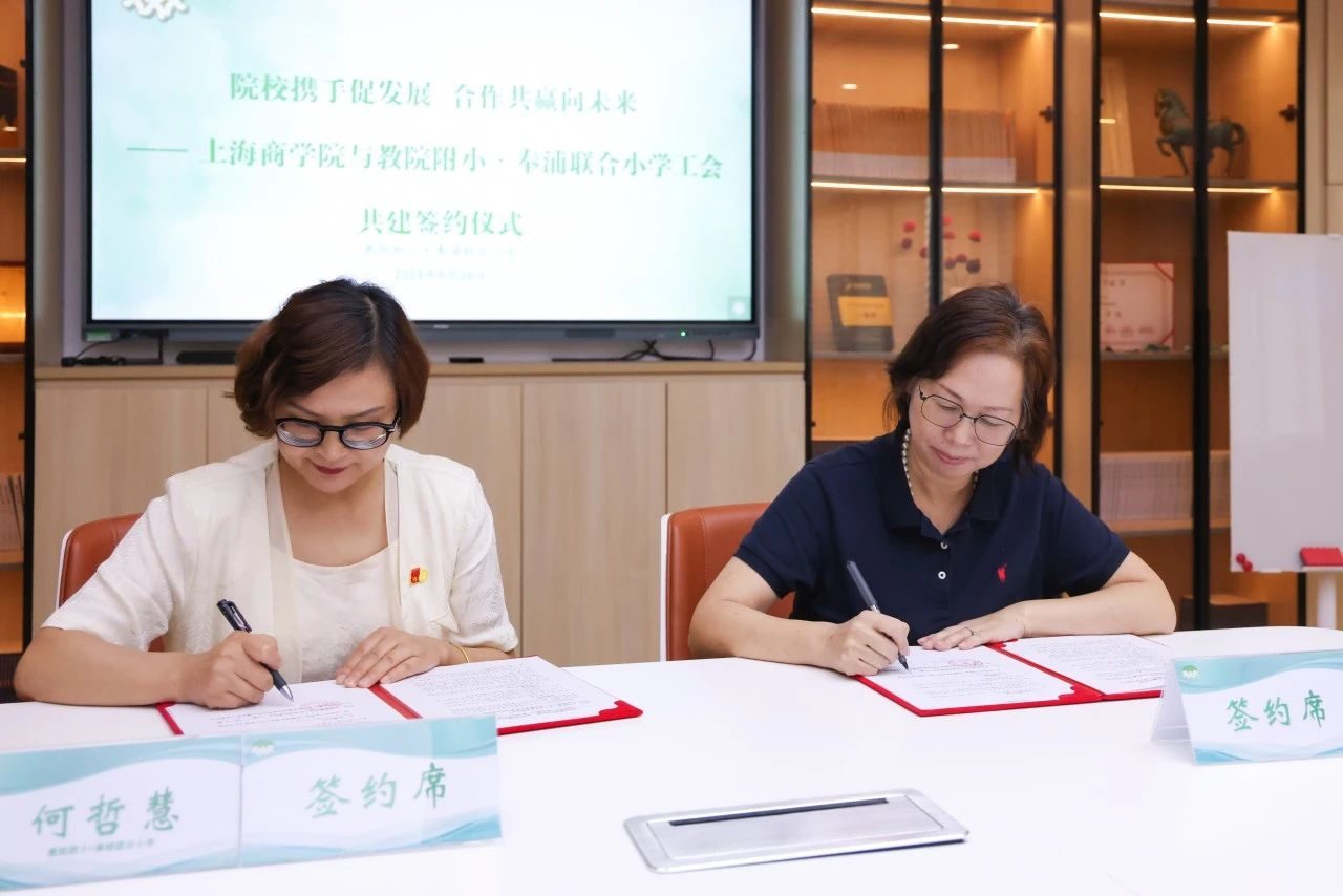 “大手牵小手”,书写合作共赢新篇章——上海商学院与奉教院附小∙奉浦联合小学工会共建签约仪式