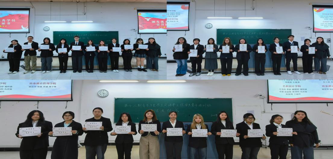 为深入学习贯彻习近平新时代中国特色社会主义思想,全面落实立德树人根本任务,酒店管理学院联合商务经济学院、艺术设计学院、洛桑酒店管理学院共同开展第十三期青年马克思主义者培养工程学生骨干培训班。3月24日,培训班结业仪式在4号教学楼546教室顺利举行,旨在以青马之魂凝聚奋进力量,激励学员在“十五五”新征程上挺膺担当。