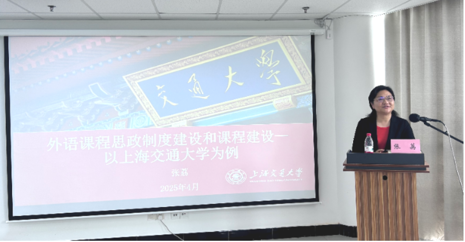 4月22日下午,商务外语学院在奉浦校区行政楼407会议室举办了一场主题为“外语课程思政制度建设和课程建设——以上海交通大学为例”的专题讲座。本次讲座特邀上海交通大学外国语学院教授、博士生导师张荔教授担任主讲嘉宾,商务外语学院领导班子以及部分教师出席了本次活动。