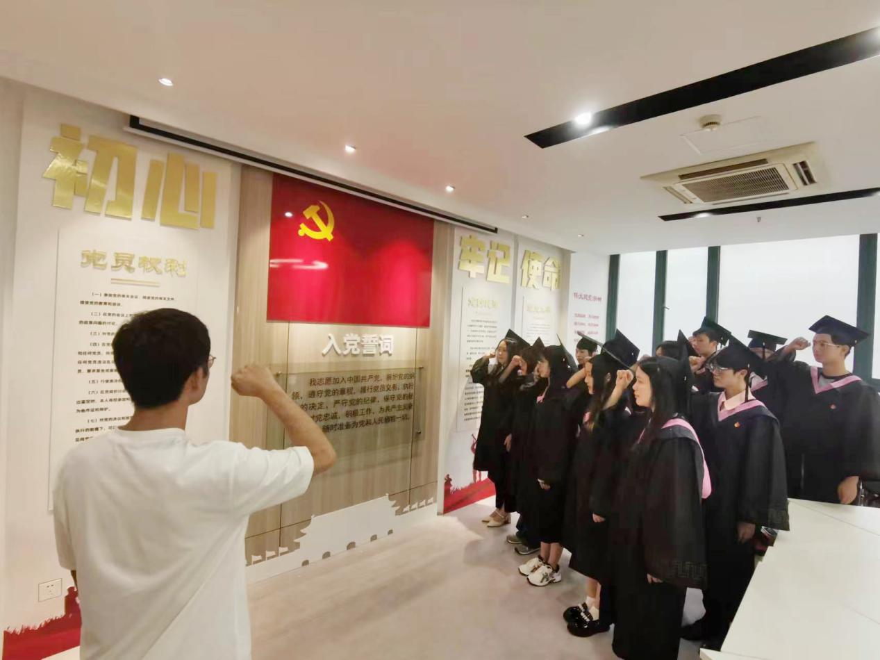 在组织委员陈龙老师的带领下,毕业生党员重温了入党誓词,回顾铮铮誓言,坚定理想信念,不忘入党初心,牢记时代使命。