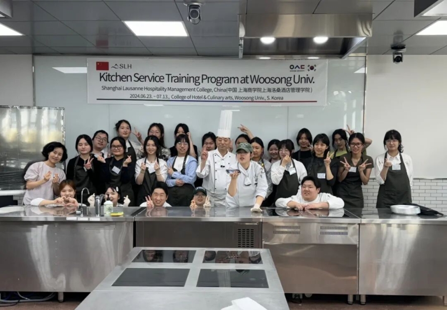 引进原版教材,深度学习交流。学生专业核心课100%采用EHL原版英文教材,学派学生赴境外深度学习交流。2024和2025年两届学生67人赴韩国又松大学完成《服务认知实践:厨房服务》中的模块学习,并获韩国结课证书。