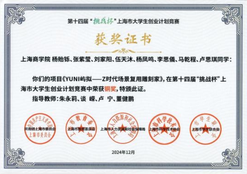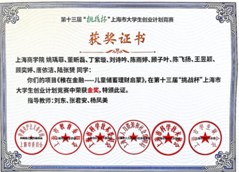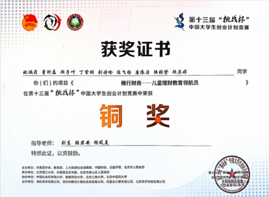 图为学生参与挑战杯及创新创业获奖证书