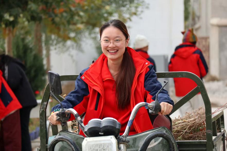 毕业之际,她心怀家国,毅然放弃留沪机会,通过新疆专招项目奔赴喀什地区英吉沙县英也尔乡。她将园林专业培养的系统规划与生态统筹思维创造性运用于基层工作。在农业办期间,深入田间地头,面对边疆艰苦的工作环境,她以“胡杨精神”扎根坚守,在服务群众的实践中完成了从“受助者”到“奉献者”的蜕变。她常说:“是国家的资助政策帮助我完成学业,现在是我回报社会的时候了。”这种感恩反哺的情怀,支撑她在边疆扎下根、沉下心、干实事。她的专业能力与奉献精神,不仅推动了当地乡村建设,更成为连接沪疆两地的情感纽带。