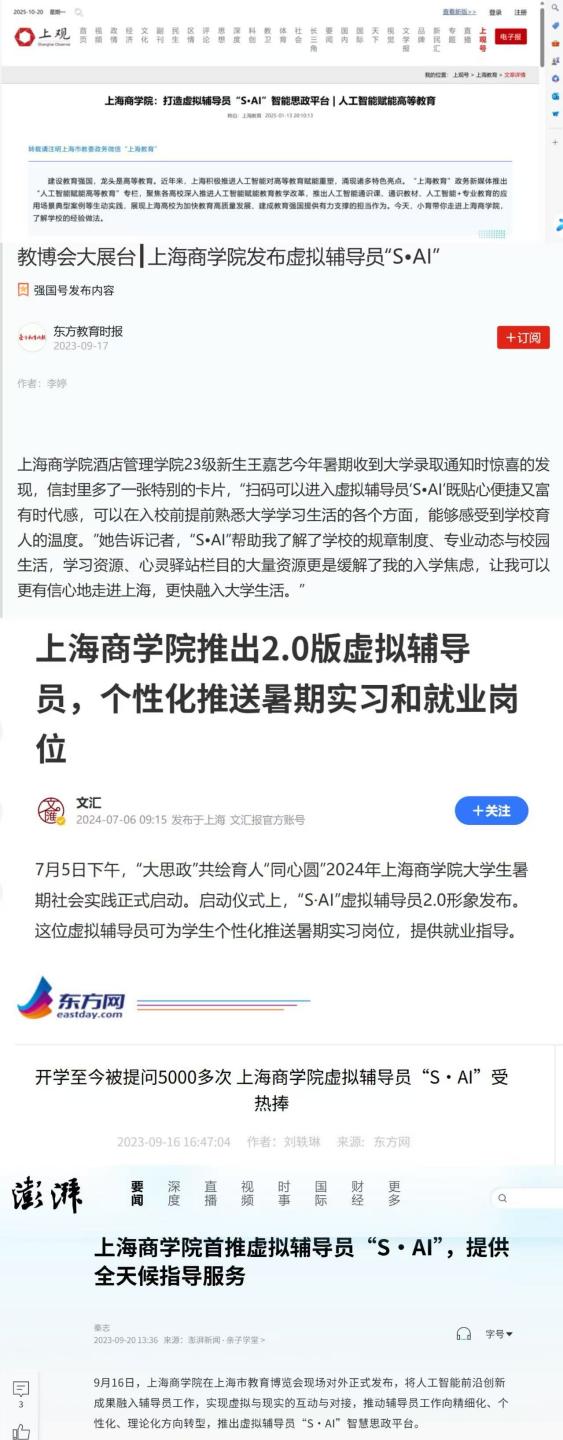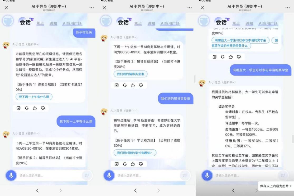 上海商学院深入贯彻落实习近平总书记关于教育的重要论述,紧密对接国家教育现代化战略,将人工智能技术深度融入“三全育人”工作格局。学校紧扣立德树人根本任务,以AI技术为驱动引擎,与易班合作先行先试开发“虚拟辅导员”智能平台,系统构建了“五育融合”智慧育人新体系。平台整合实践、文化、网络育人三大路径,打造具有情感交互和认知陪伴功能的“学伴智能体”,为学生提供针对性,有效性的学涯和职涯发展支持。这一实践有效拓展了思政教育的工作边界,推动了思政教育由传统单向灌输向现代的互动赋能转变,是学校顺应数字时代潮流、培养担当民族复兴大任时代新人的前沿探索,为高校思政工作改革创新提供了可资借鉴的“上商方案”。