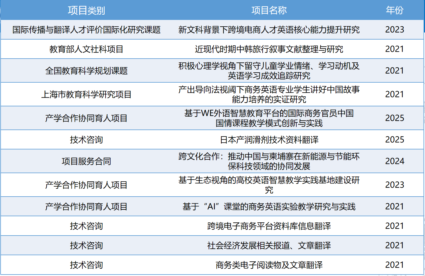 学院重视科研与教学的良性互动,依托“一带一路”跨文化研究中心、商务翻译研究中心、东亚研究中心等科研平台,激励教师在语言类型学、对比语言学、区域国别研究、课程思政等领域开展深耕研究。聚焦教学质量与课程思政建设双核心,构建“教学观摩—竞赛—评优”全链条提升机制,近三年成效显著。教学能力提升方面,3人获评校级“教学标兵”、2人获评校级“青年教学标兵”,校级青年教师教学基本功大赛累计获奖6项;1人在2025年“外教社杯”全国高校外语教学大赛上海赛区斩获二等奖。课程思政建设方面,教师在2023-2025年全国外语课程思政教学案例大赛及外研社“教学之星”课程思政专项赛中屡获殊荣,累计获全国一等奖1项、二等奖2项、三等奖多项,优质成果的示范效应持续辐射,为课程建设提供了有力支撑。学院持续强化师资与科研建设,通过“走出去”与“强内功”相结合的方式,不断形成“育人”与“科研”互促共进的良好格局。师资建设上,累计组织420人次教师参加各类培训研修提升专业能力,进一步夯实教师队伍的学术功底与科研潜力,承担国家级、省部级课题20余项,发表高水平学术论文70余篇,出版专著、译著、教材20余部。